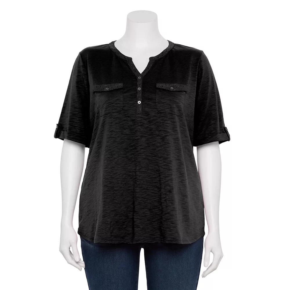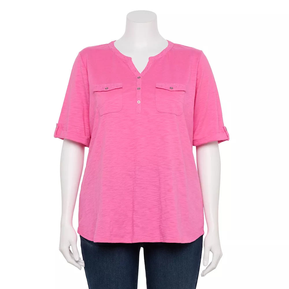 Update your casual wardrobe with this women’s plus size henley top from Croft & Barrow.