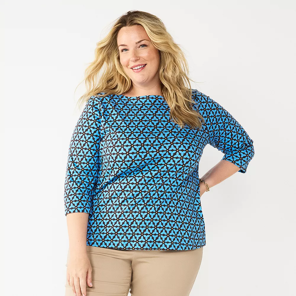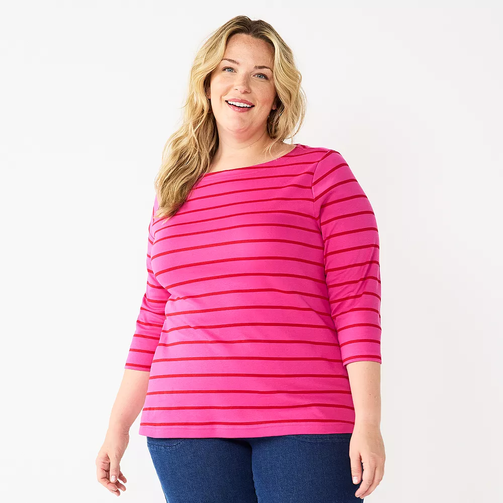 Update your casual wardrobe with this women’s plus size boatneck tee from Croft & Barrow.