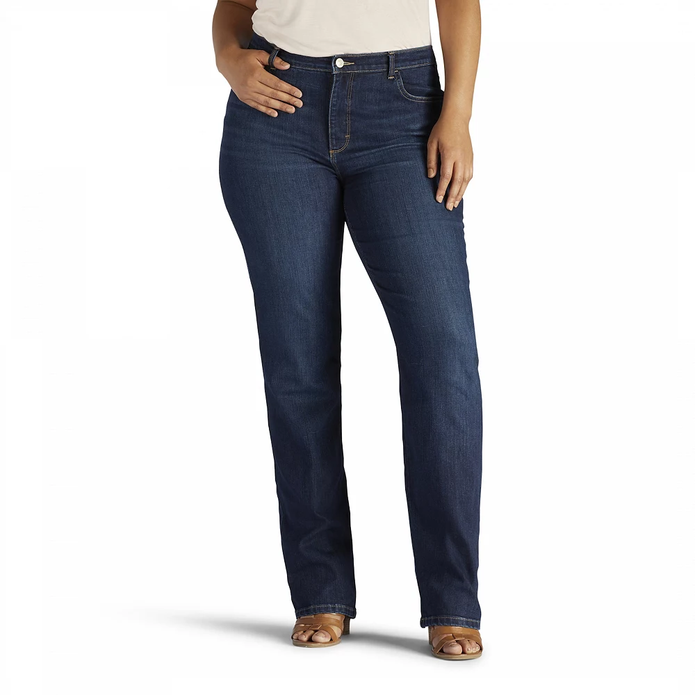 Elevate the casual with these women’s Lee jeans. A straight-leg design from the waist to leg openings provides a completely flattering look.