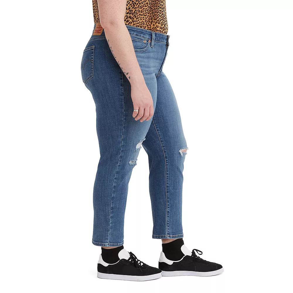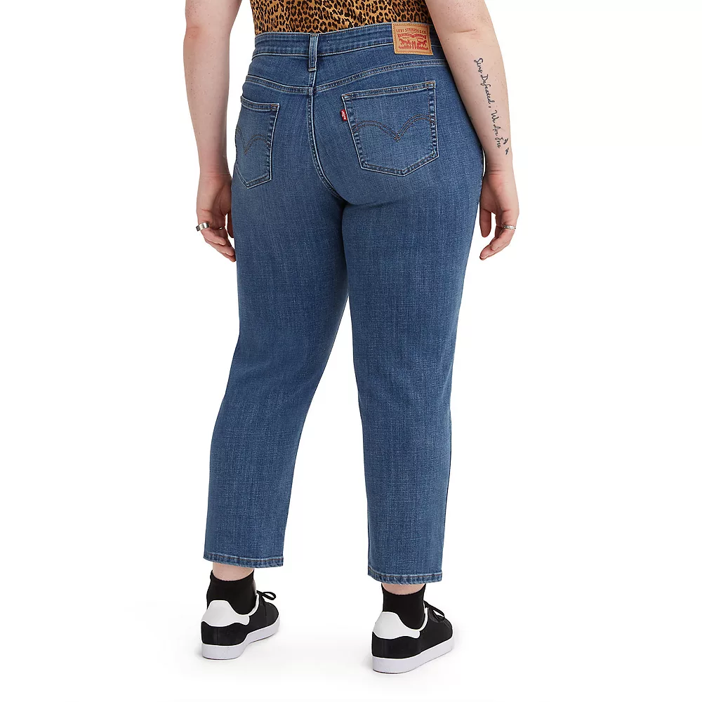 Get that borrowed-from-the-boys look with these women’s Levi’s jeans, upgraded with soft stretch denim for comfort. Roll the hems and pair with heels for added style. Features a mid rise, relaxed fit through the hip and thigh, and a straight leg.