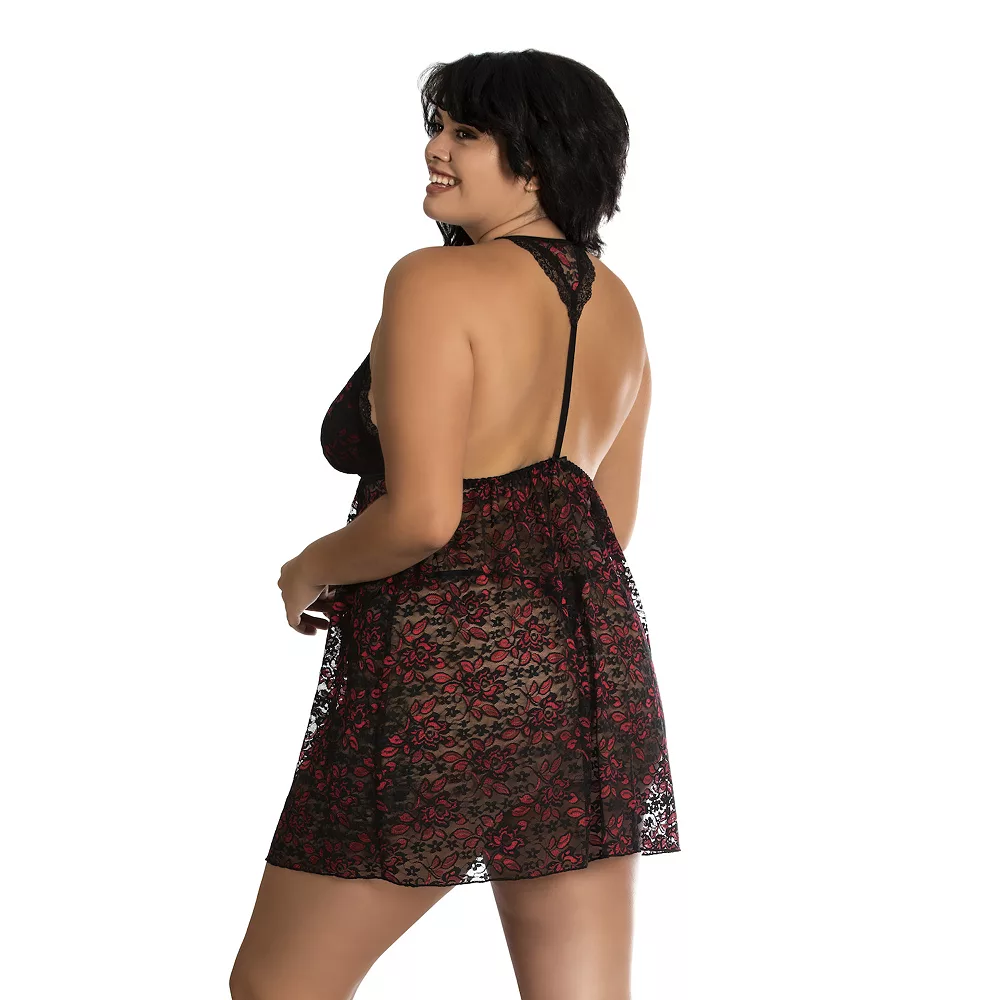 Showcase your seductive side when wearing this women’s lace babydoll chemise and G-string panty lingerie set from Lilac+London.