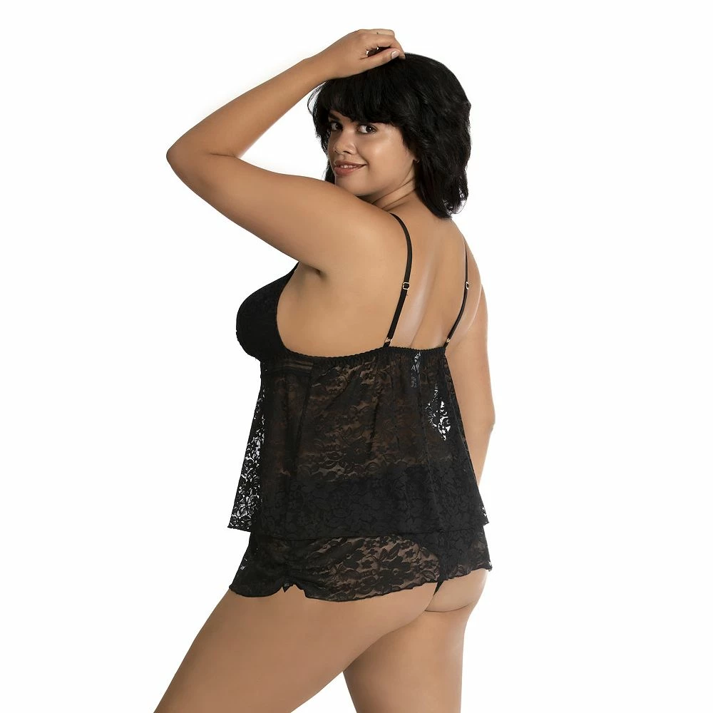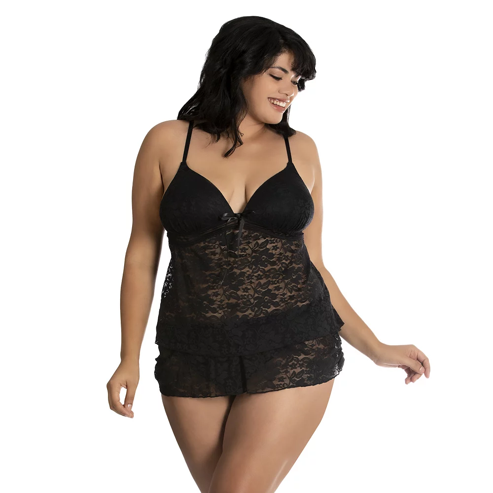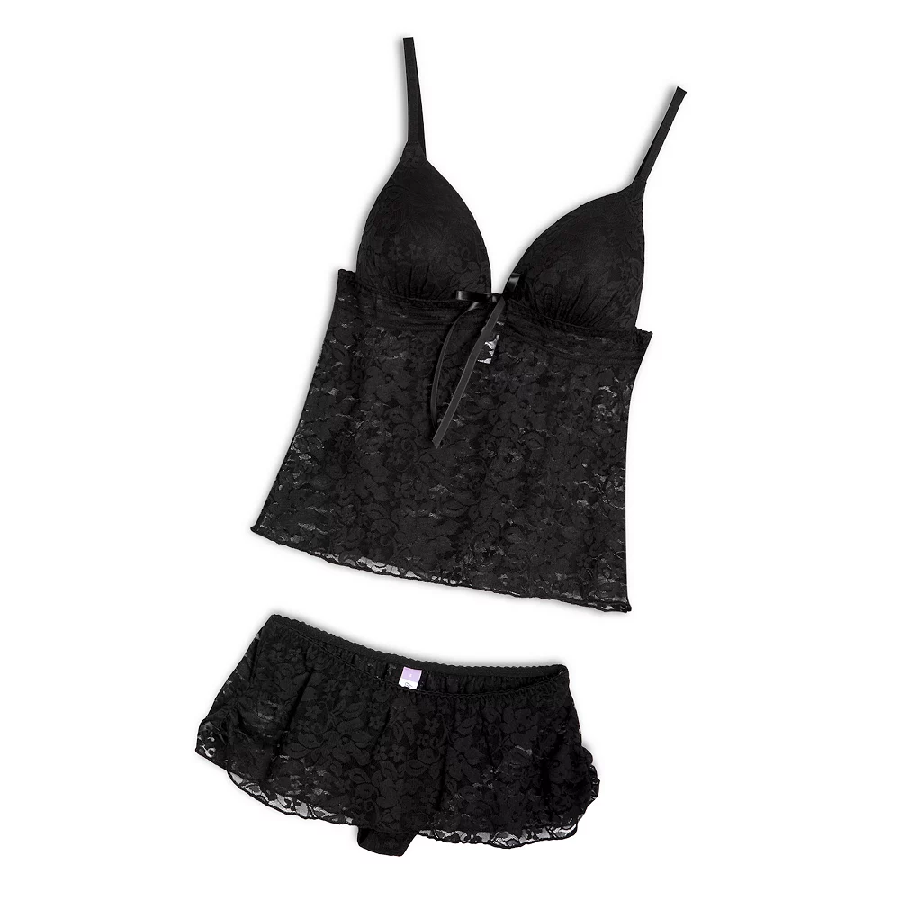 Add an abundance of feminine flair to your nighttime attire with this women’s Lilac+London stretch lace cami and skirted panty set.