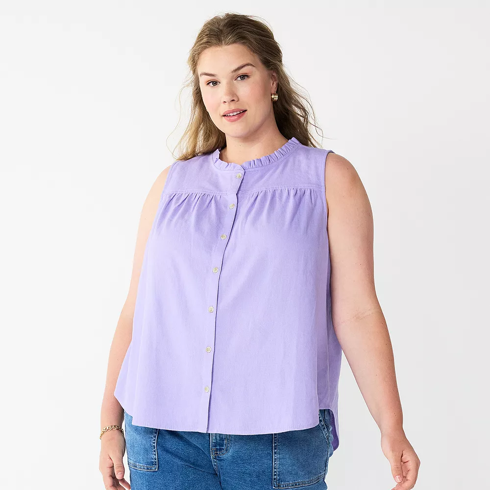 For a fun and feminine look, reach for this women’s Sonoma Goods For Life button-front tank top.
